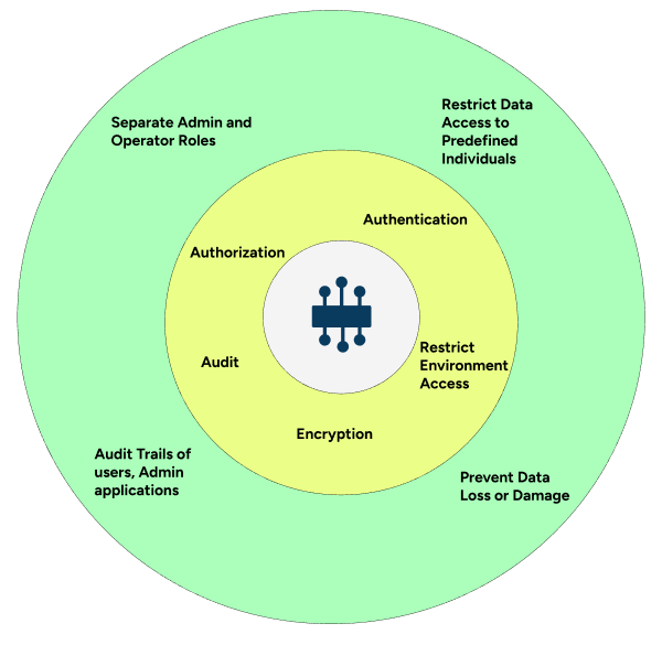 - how these goals can be achieved through secure system capabilities such as authentication, authorization, auditing, and encryption